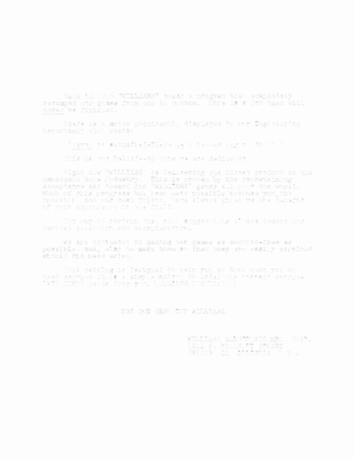 acceptance and demand for "WILLIAMS" games allover the world.