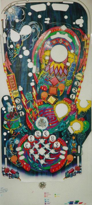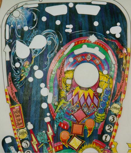 One of the initial artist concepts of the playfield art. Most of this is in pencil. Compare with final version. |