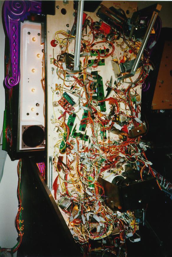 The second Whitewood for Cirqus Voltaire was built in December 1996. The playfield layout is noticably different from the final version, the most significant being the absence of the Marvel grid in the center of the playfield.