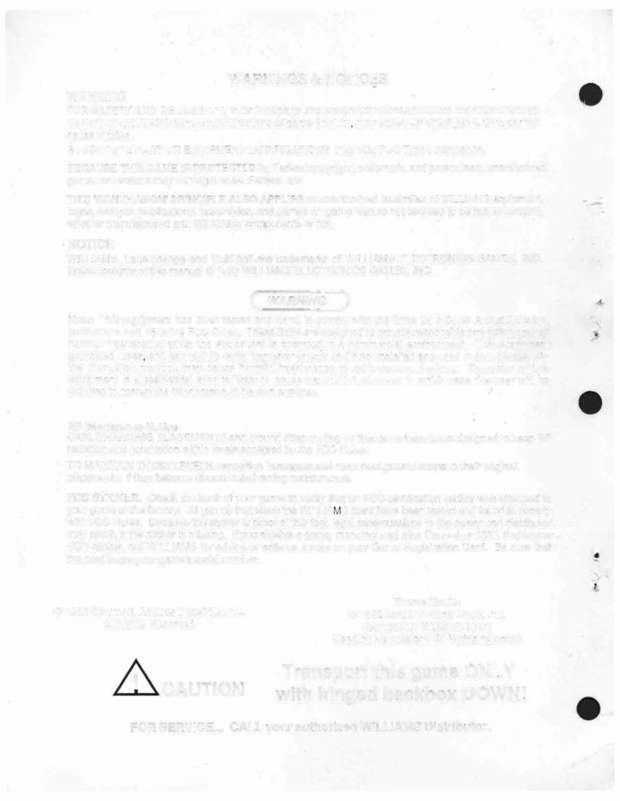 FCC sticker, call WILLIAMS for advice or write us a note on your Game Registration Card. Be sure that