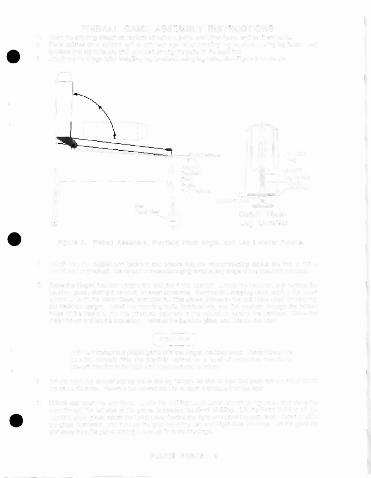 Figure 3. Pinball Assemb ly. PJayfield Pitch Angle. and Leg Leveller Deta ils.