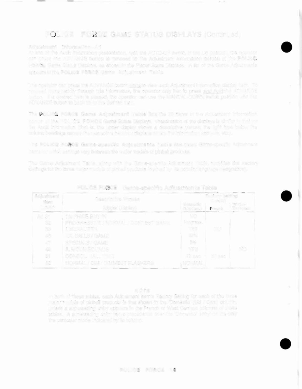 Inn)rrl~,,[lGame Status Displays, as shown in the Player Score Displays. A list of the Game Adjustments