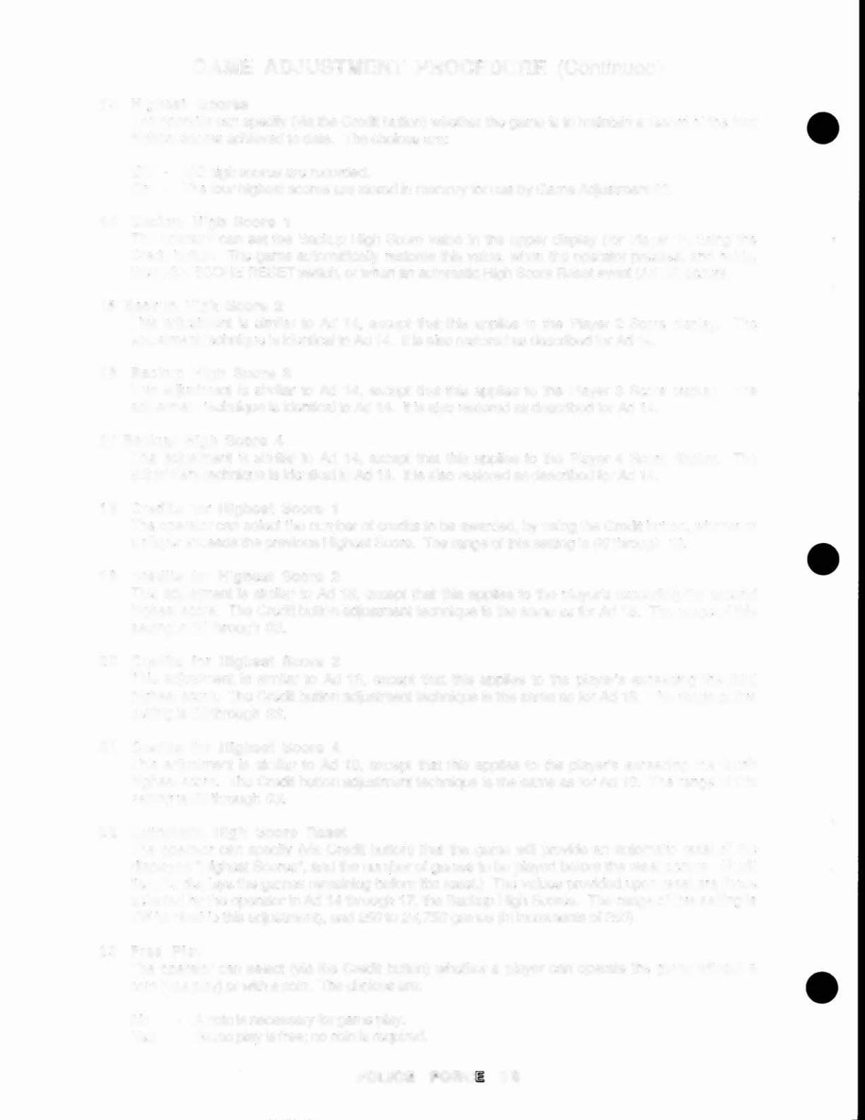 GAME ADJUSTMENT PROCEDURE