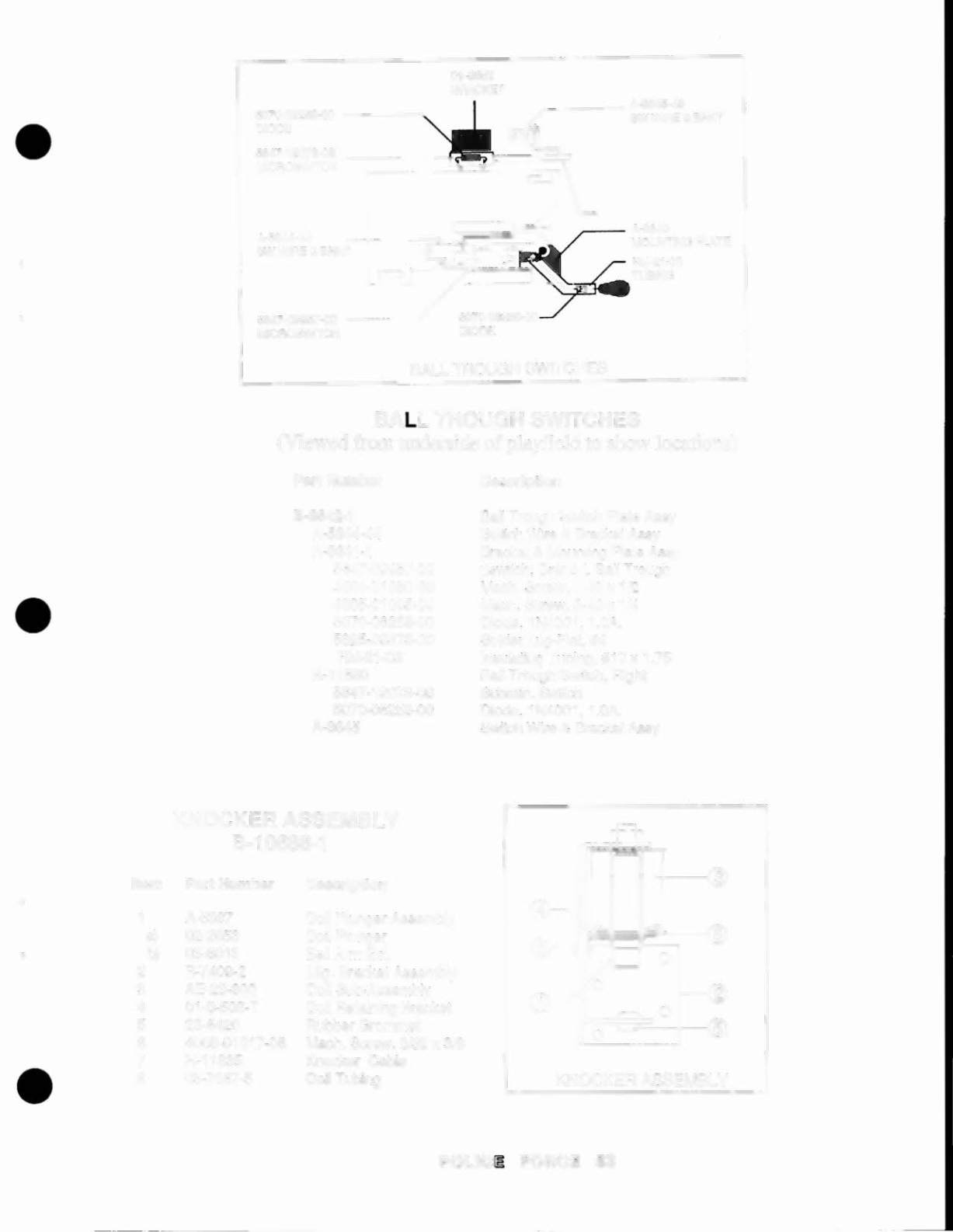 (Viewed from underside of play field to show locations)