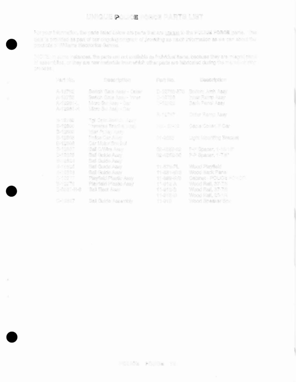 PARTS LIST
