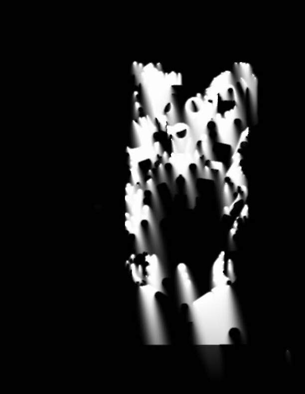 shot, lights "BE MERRY" and