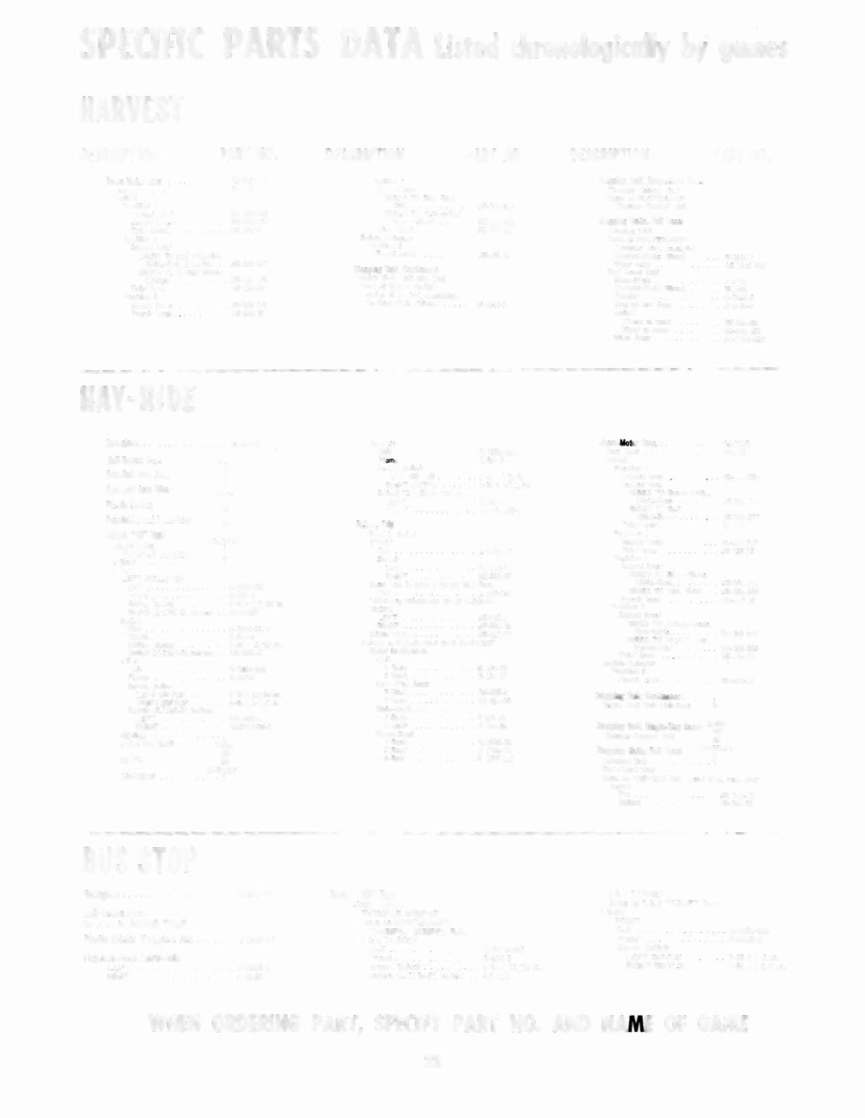 WHEN ORDERING PART, SPECIFY PART NO. AND NAME OF GAME