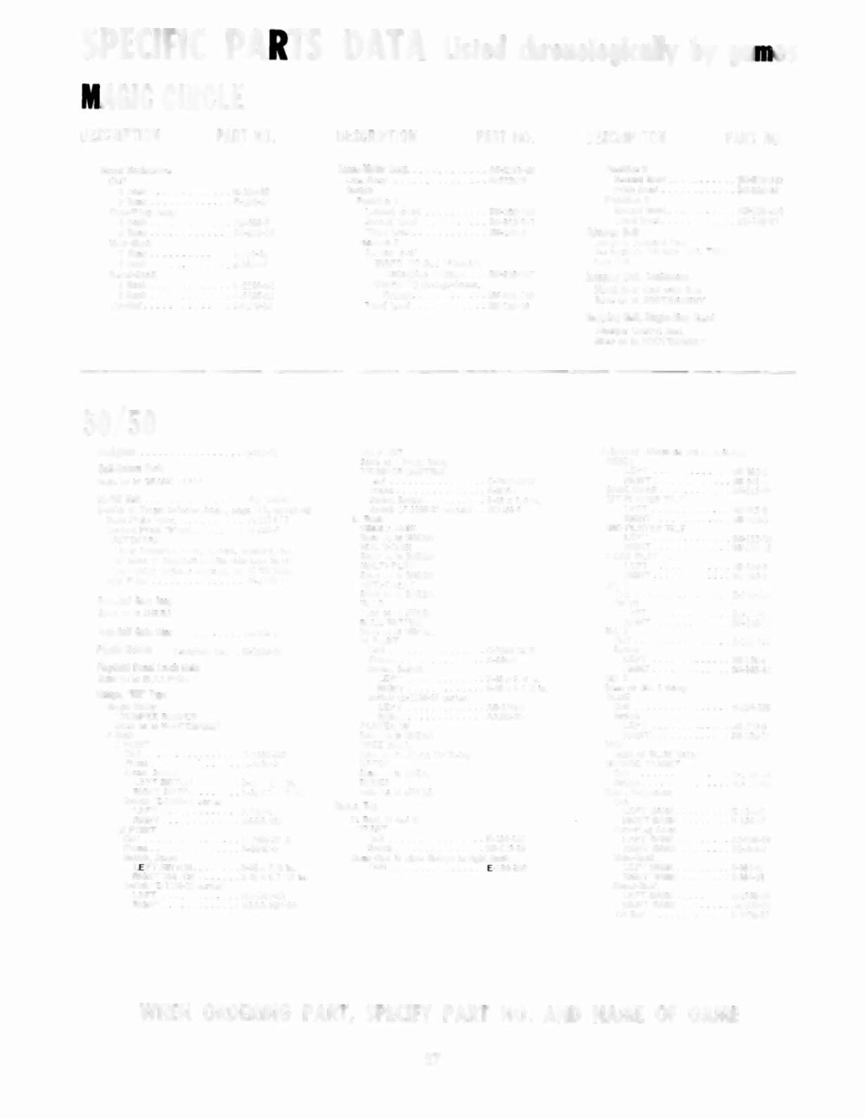 WHEN ORDERING PART, SPECIFY PART NO. AND NAME OF GAME