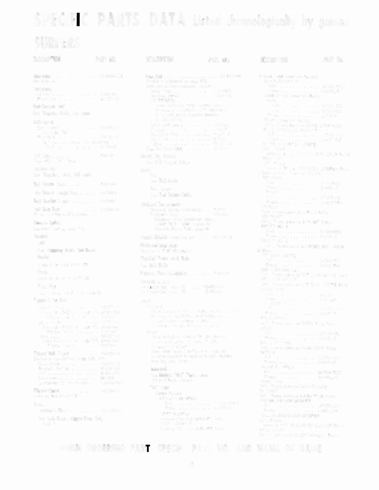 WHEN ORDERING PART, SPECIFY PART NO. AND NAME OF GAME