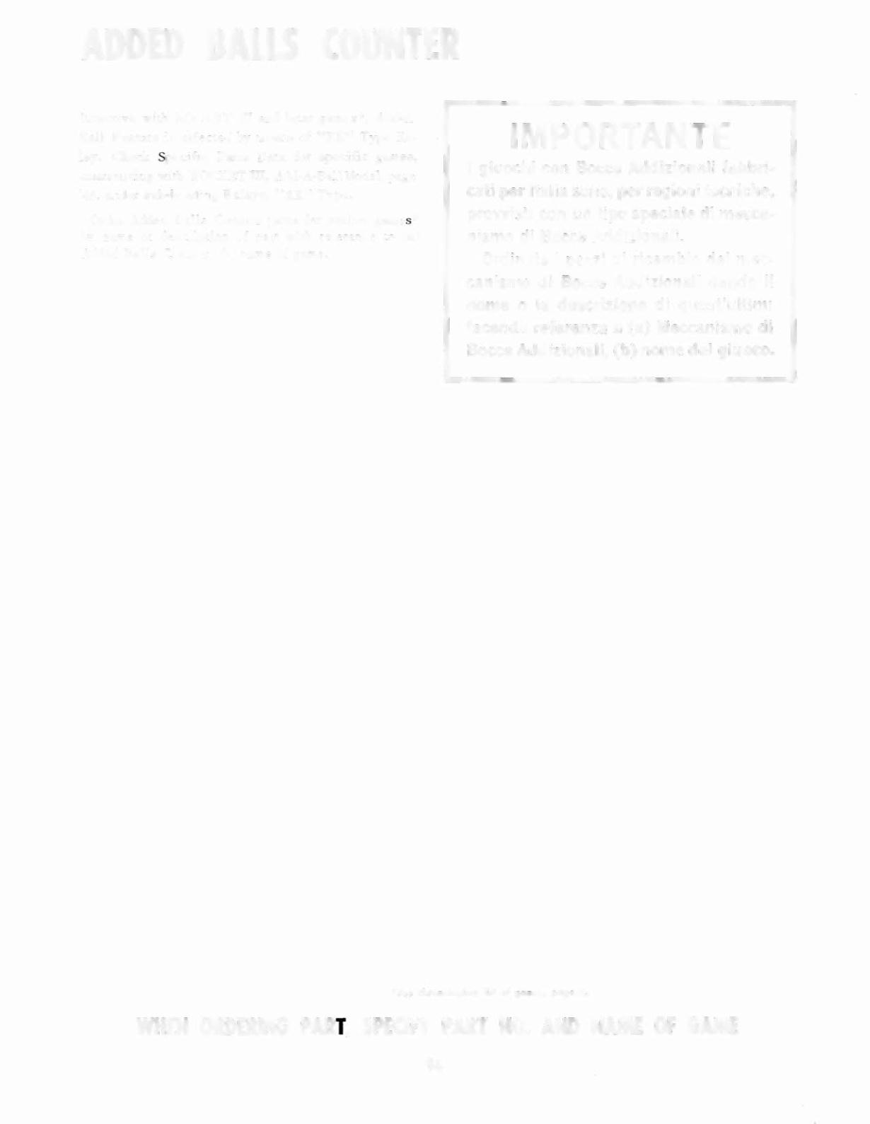 WHEN ORDERING PART, SPECIFY PART NO. AND NAME OF GAME