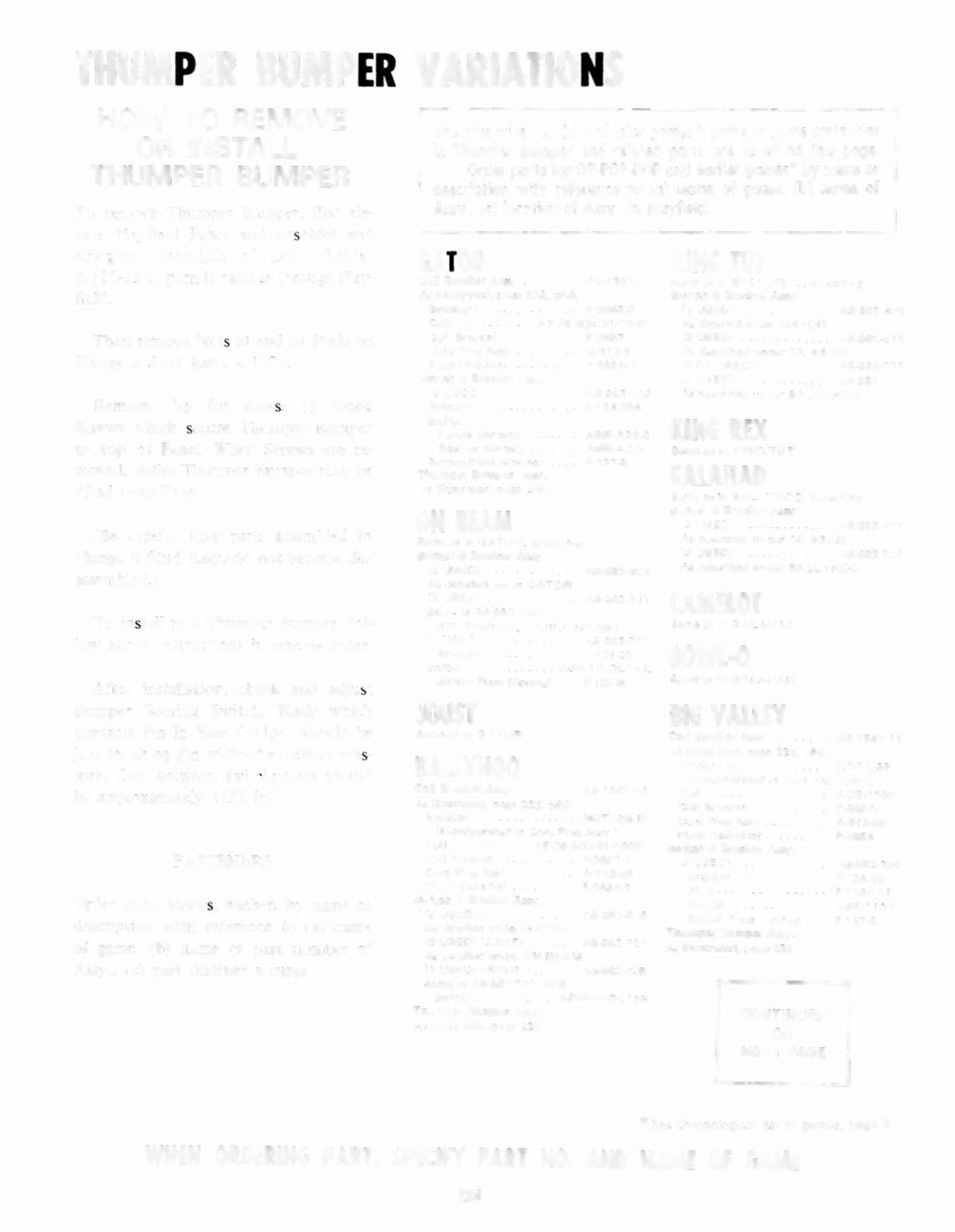 WHEN ORDERING PART, SPECIFY PART NO. AND NAME OF GAME