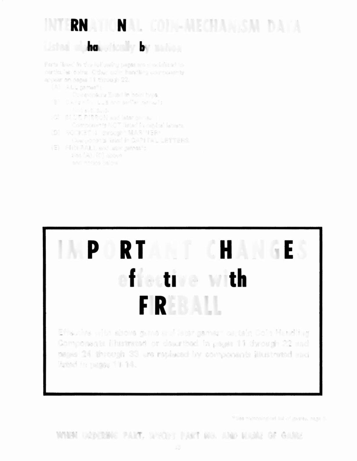 WHEN ORDERING PART, SPECIFY PART NO. AND NAME OF GAME