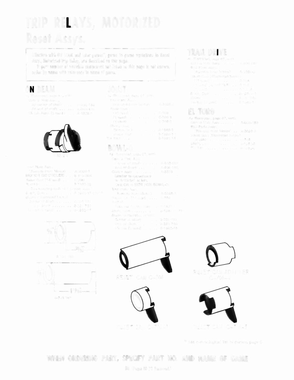 WHEN ORDERING PART, SPECIFY PART NO. AND NAME OF GAME