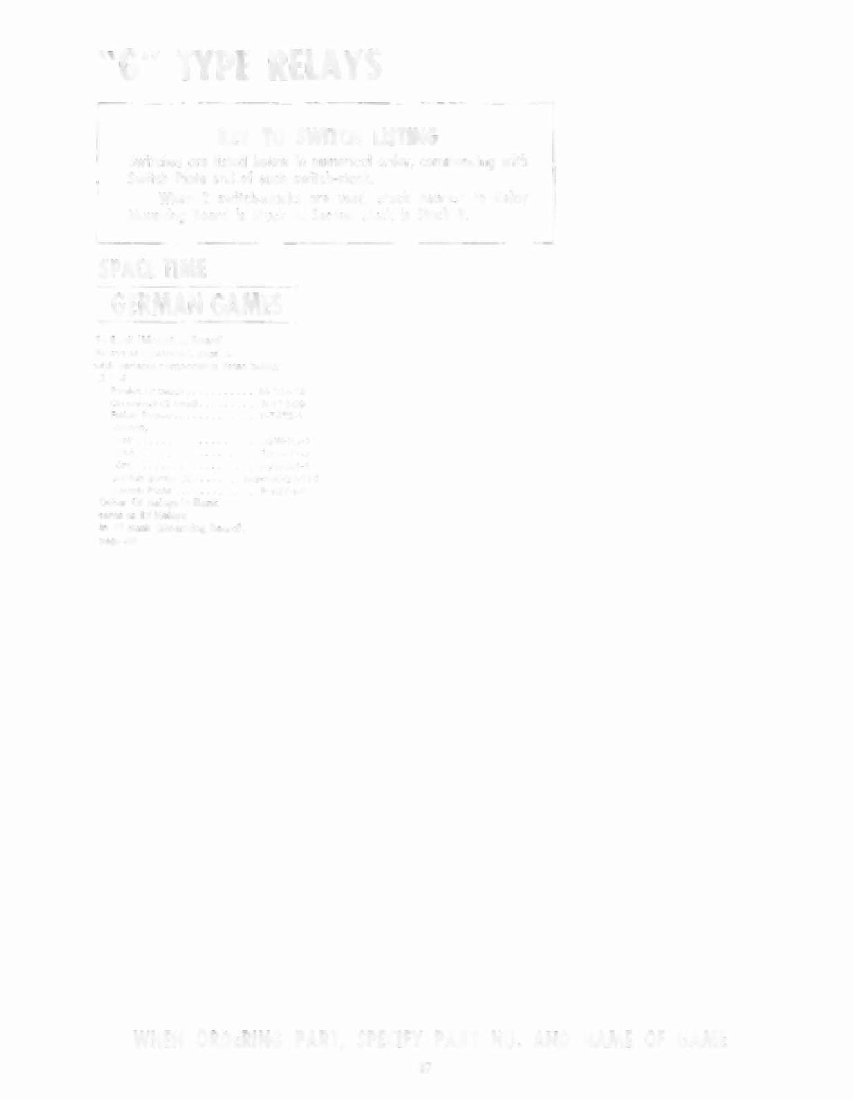 WHEN ORDERING PART, SPECIFY PART NO. AND NAME OF GAME