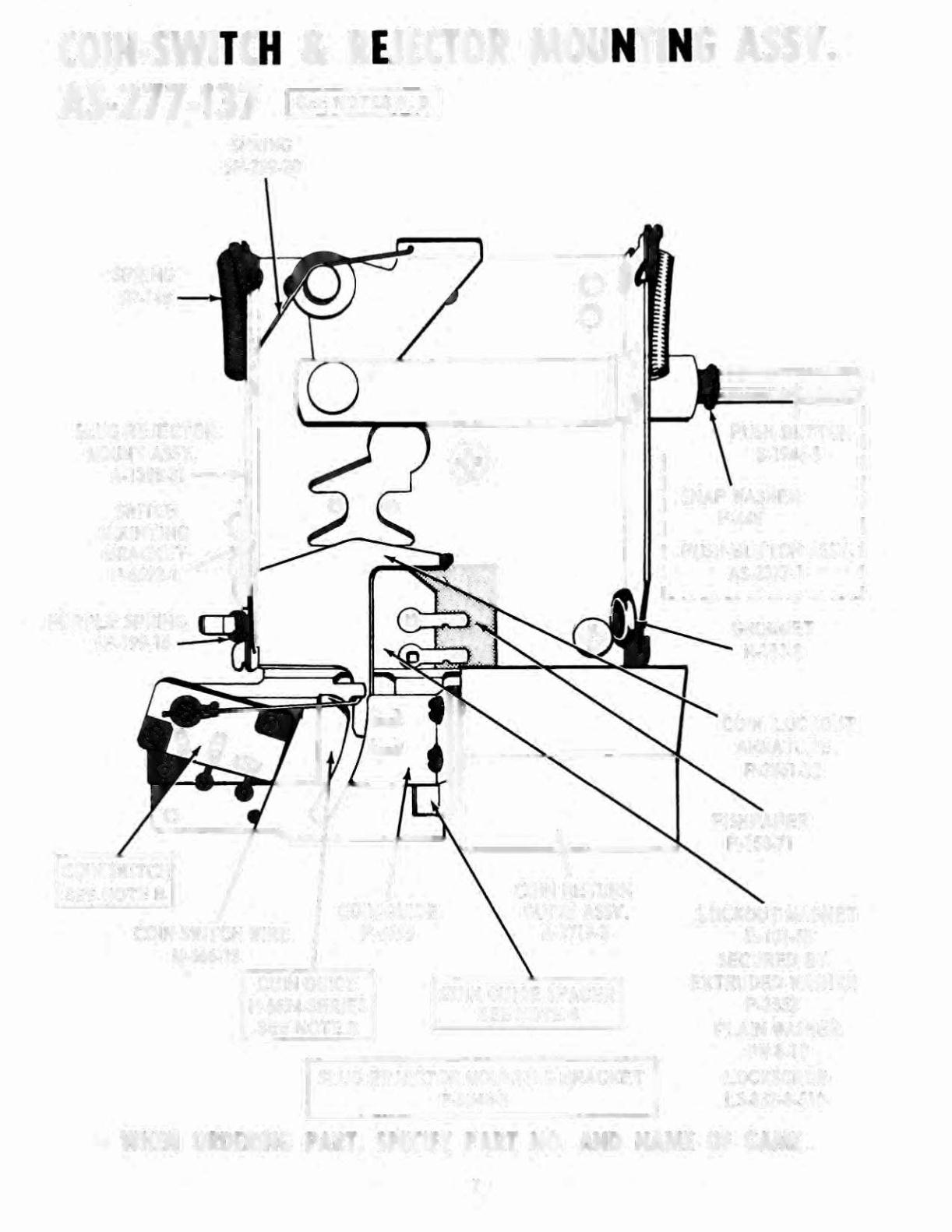WHEN ORDERING PART, SPECIFY PART NO. AND NAME OF GAME