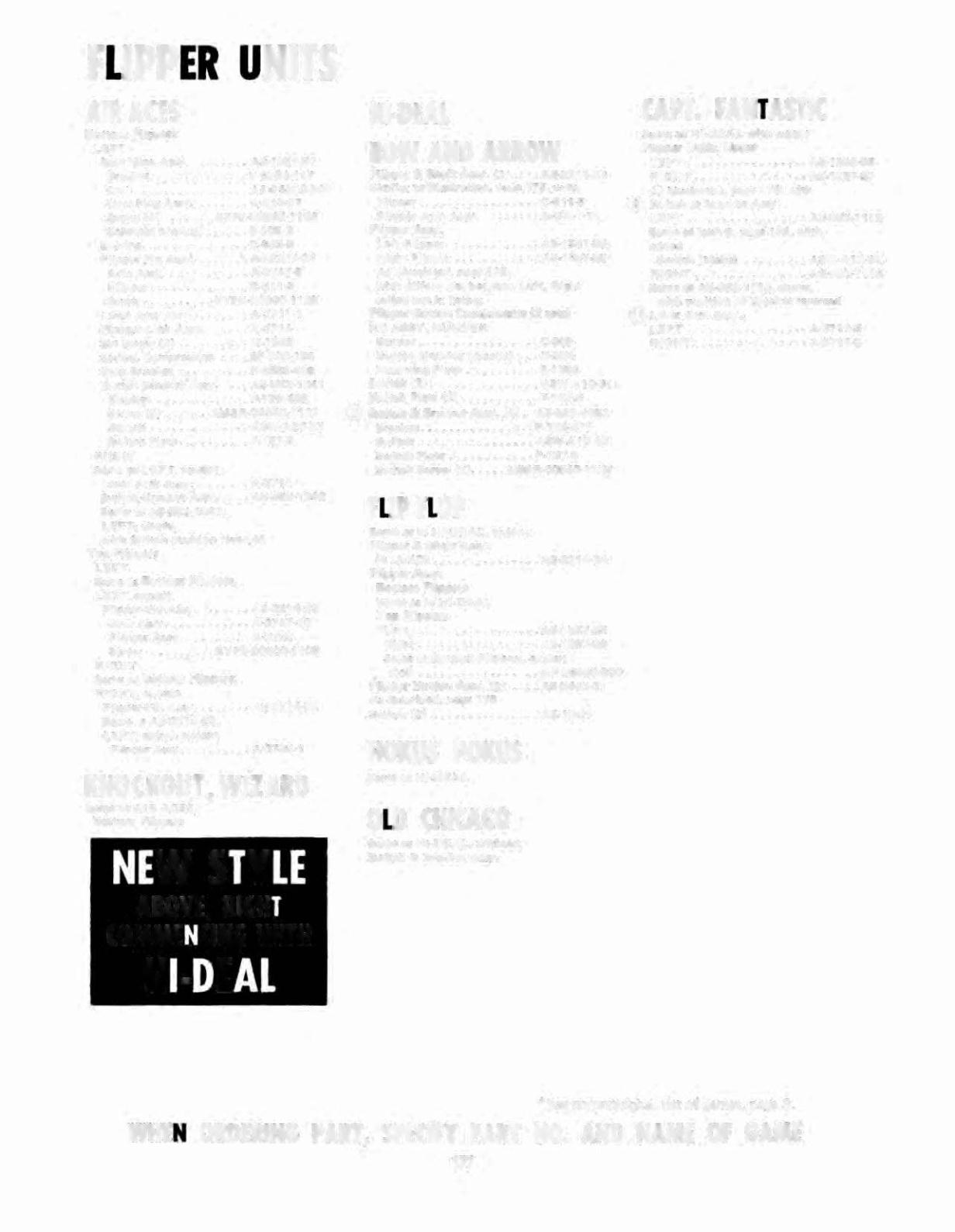 WHEN ORDERING PART, SPECIFY PART NO. AND NAME OF GAME