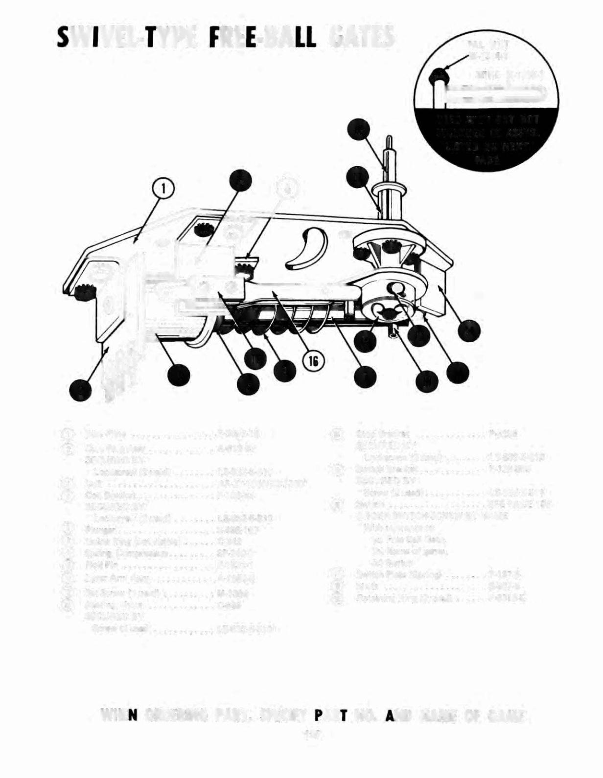 WHEN ORDERING PART, SPECIFY PART NO. AND NAME OF GAME