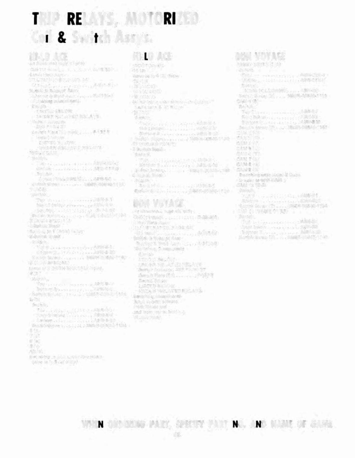 WHEN ORDERING PART, SPECIFY PART NO. AND NAME OF GAME