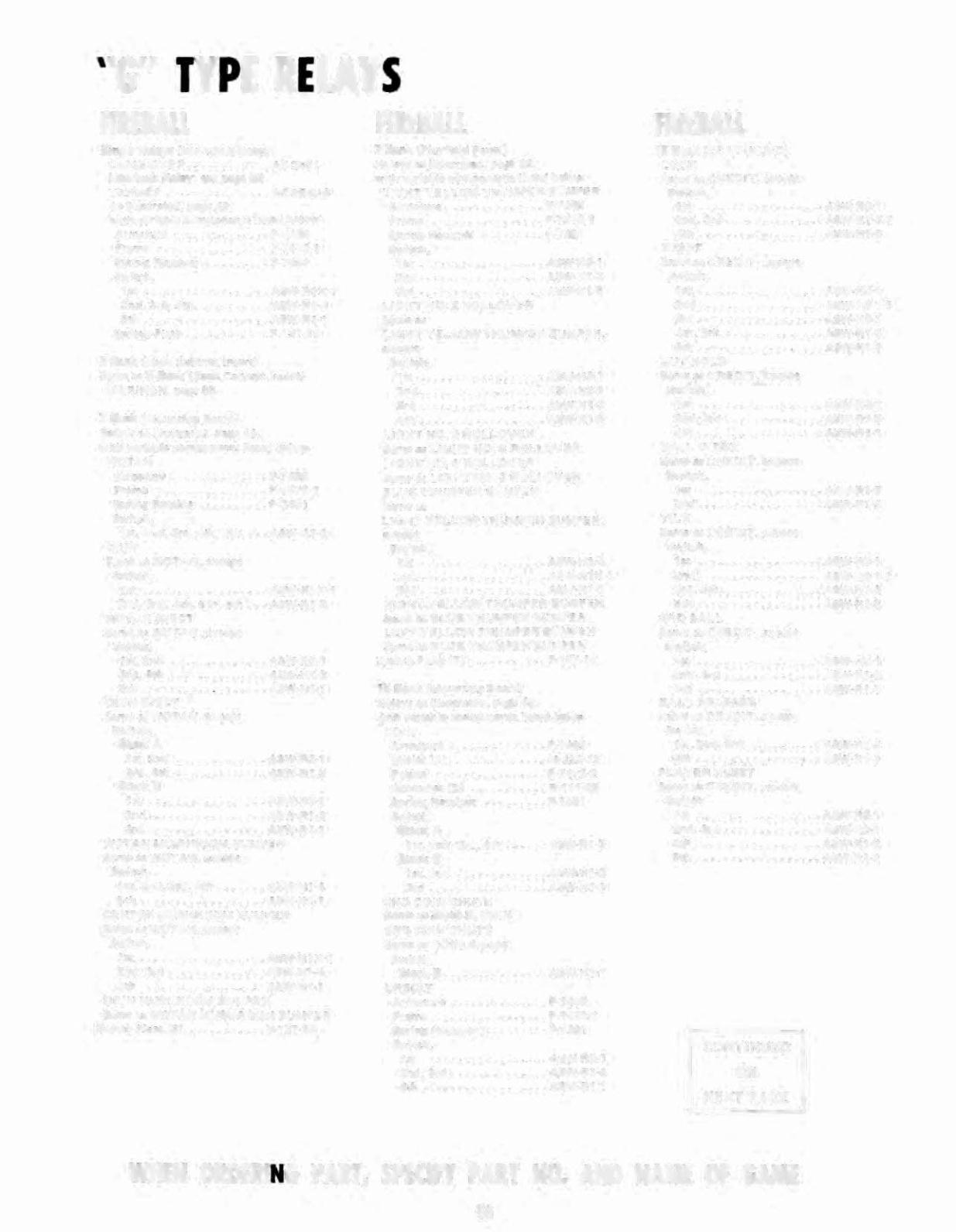 WHEN ORDERIN'G PART, SPECIFY PART NO. AND NAME OF GAME