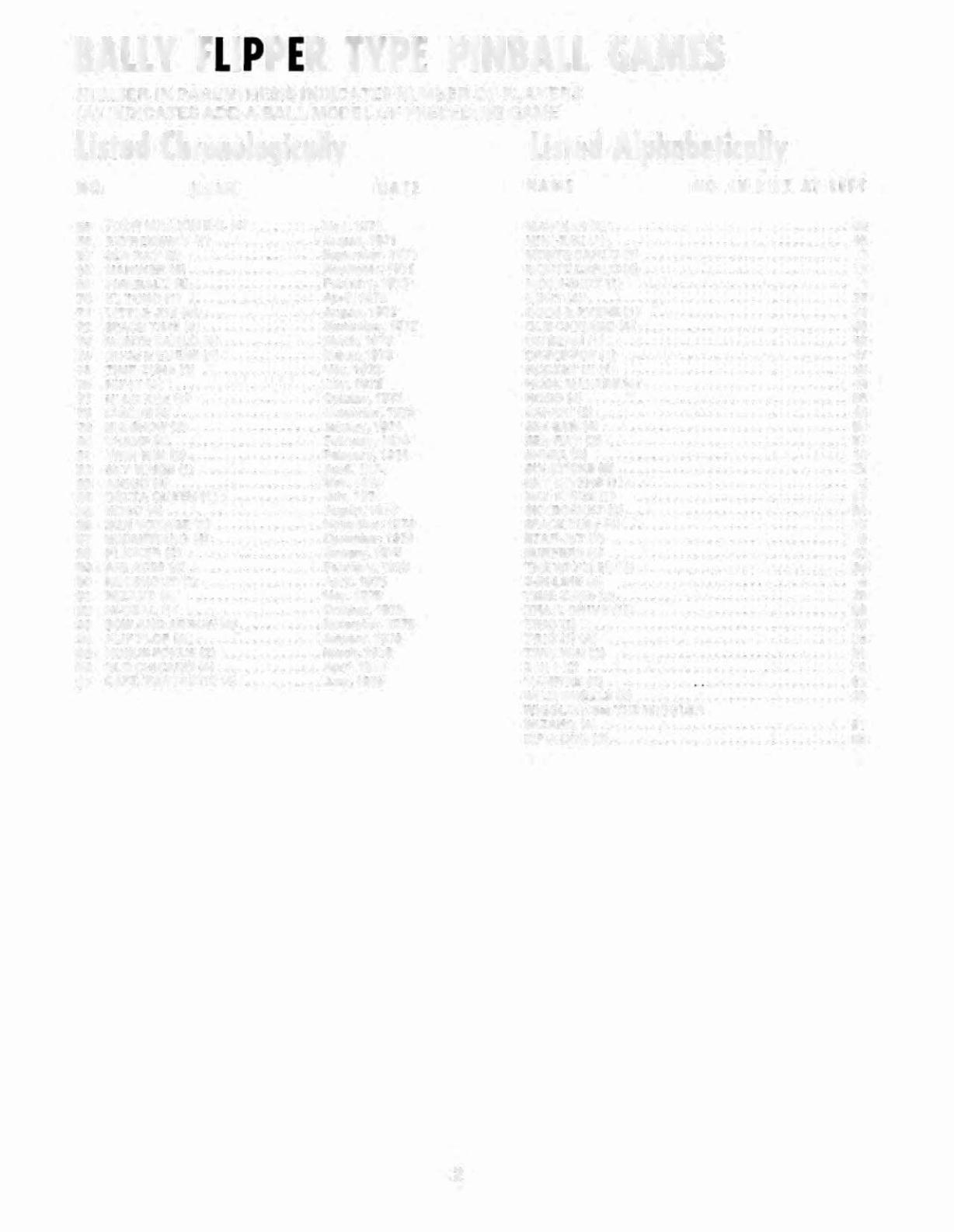 BALLY FLIPPER TYPE PINBALL GAMES