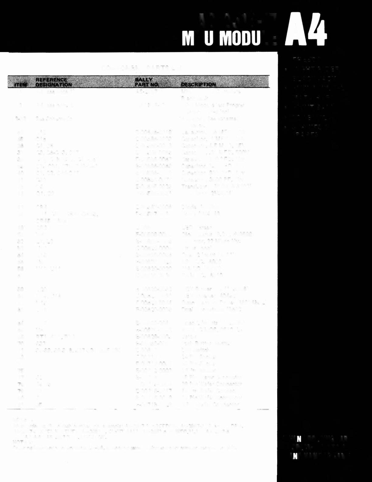 COMPONENT PARTS LIST