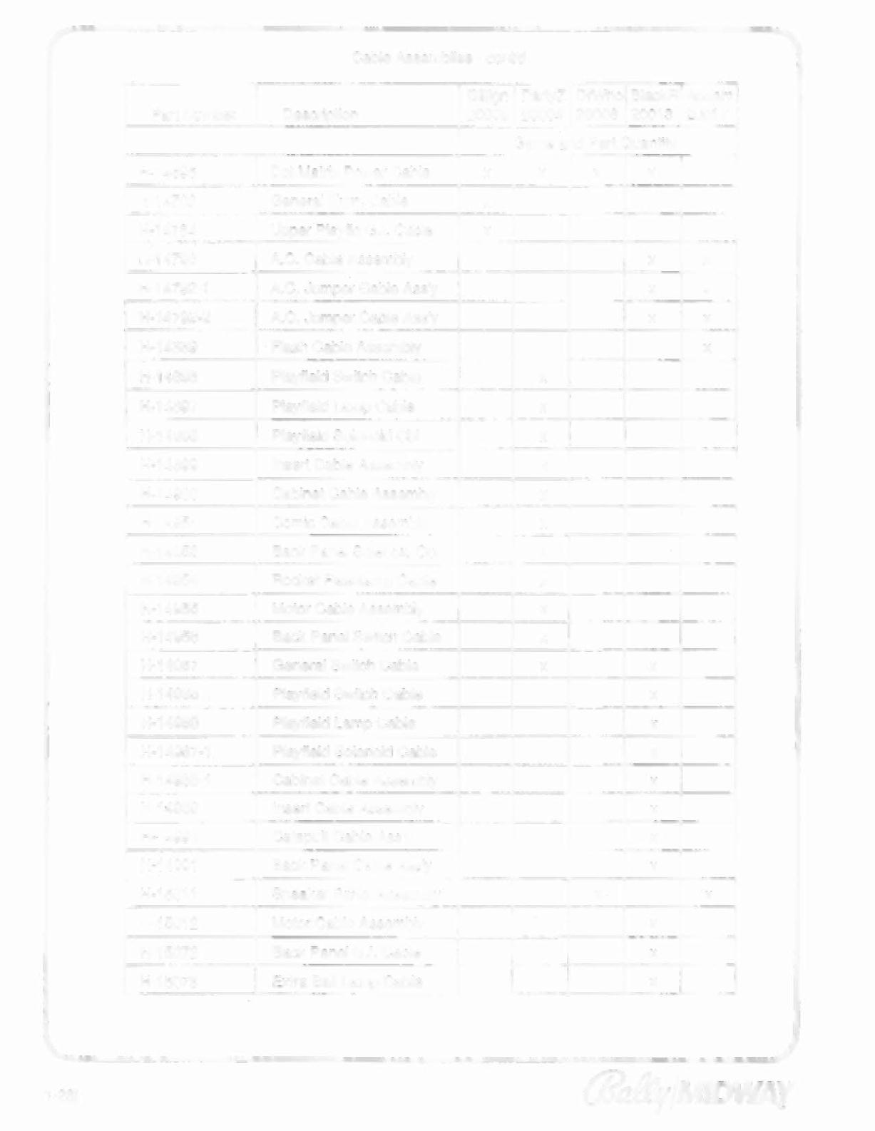 Playfield Lamp Cable