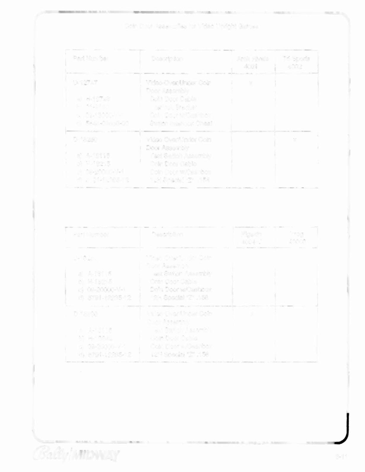 Coin Door Assemblies for Video Upright Games