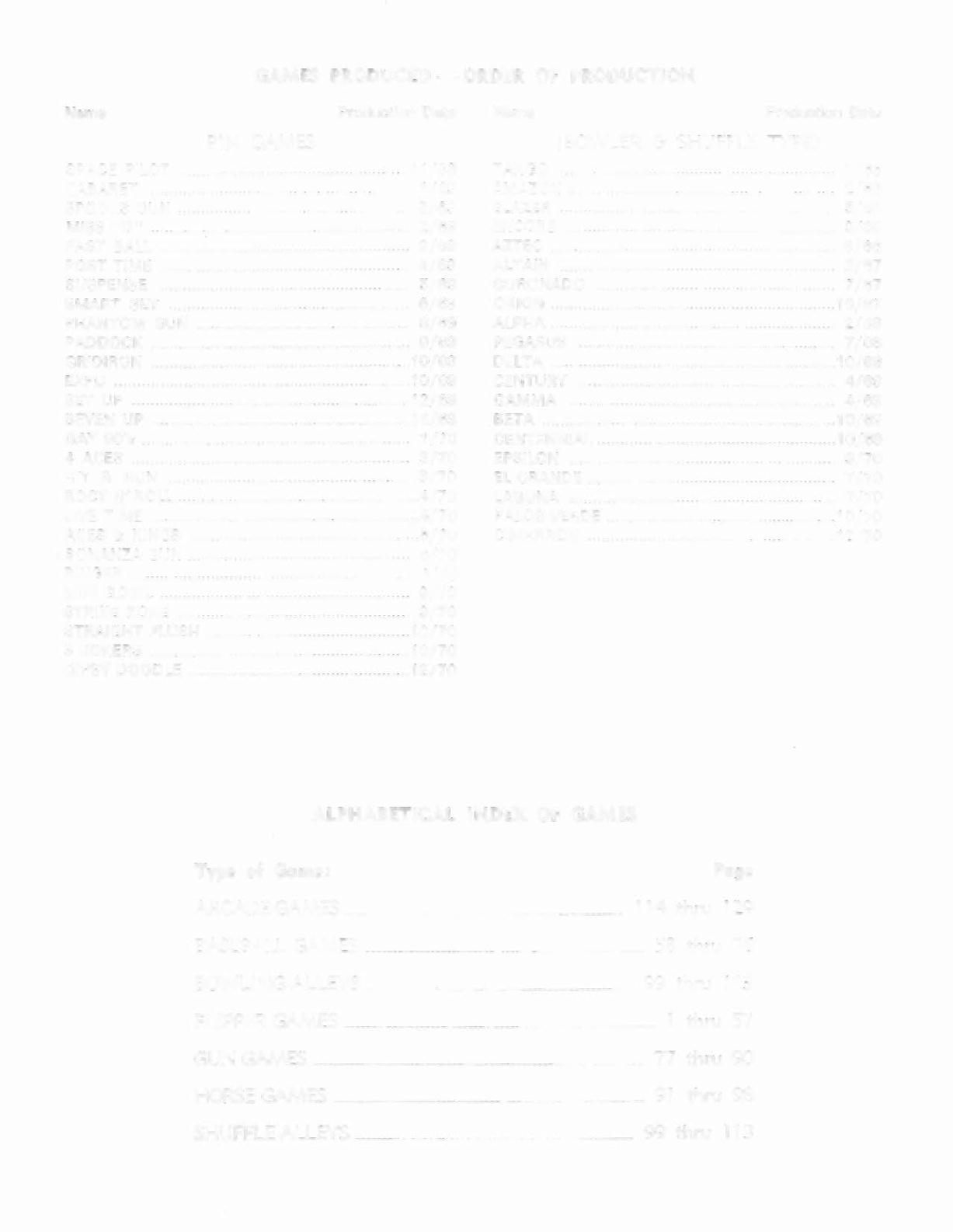 GAMES PRODUCED - ORDER OF PRODUCTION