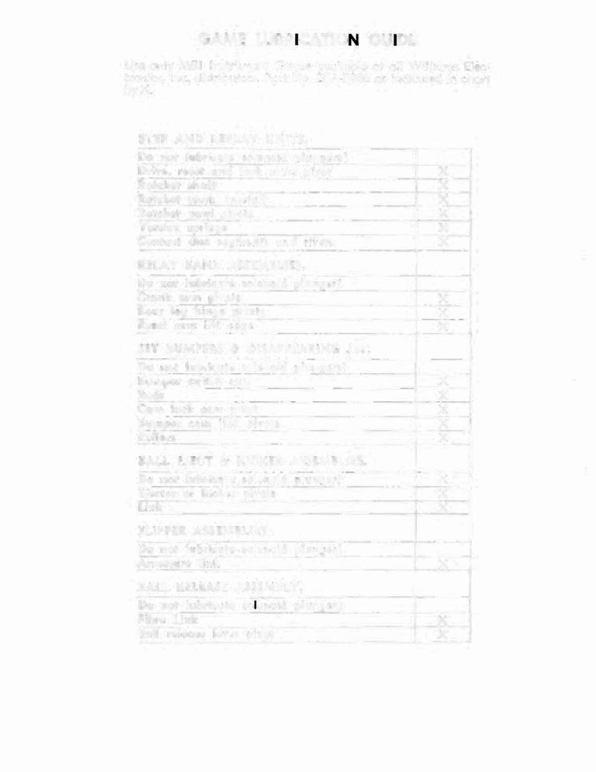 GAME LUBRICATION GUIDE