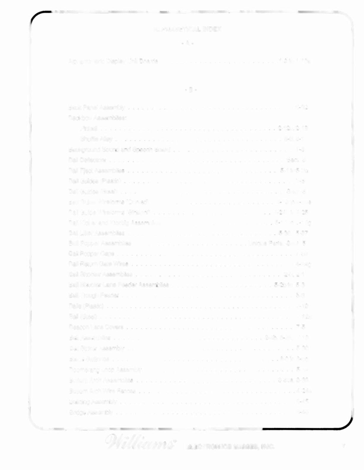 Ball Shooter Lane Feeder Assemblies . . . . . . . . . . . . . . . . . . . . . 5-2b to 5-3