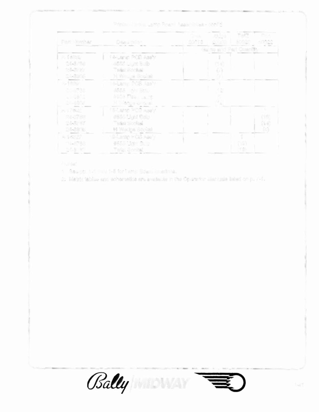 1. See pp. 1-1 thru 1-5 for Lamp Board locations.